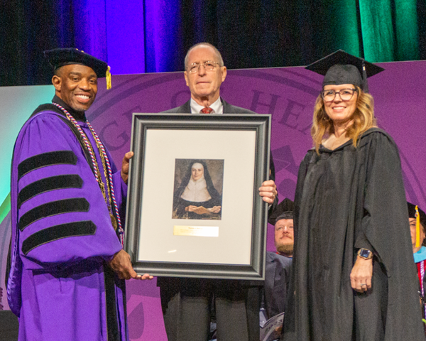 The award is a framed copy of a portrait of Mother Mary Catherine McAuley, Foundress of the Sisters of Mercy, by artist Cloy Kent.